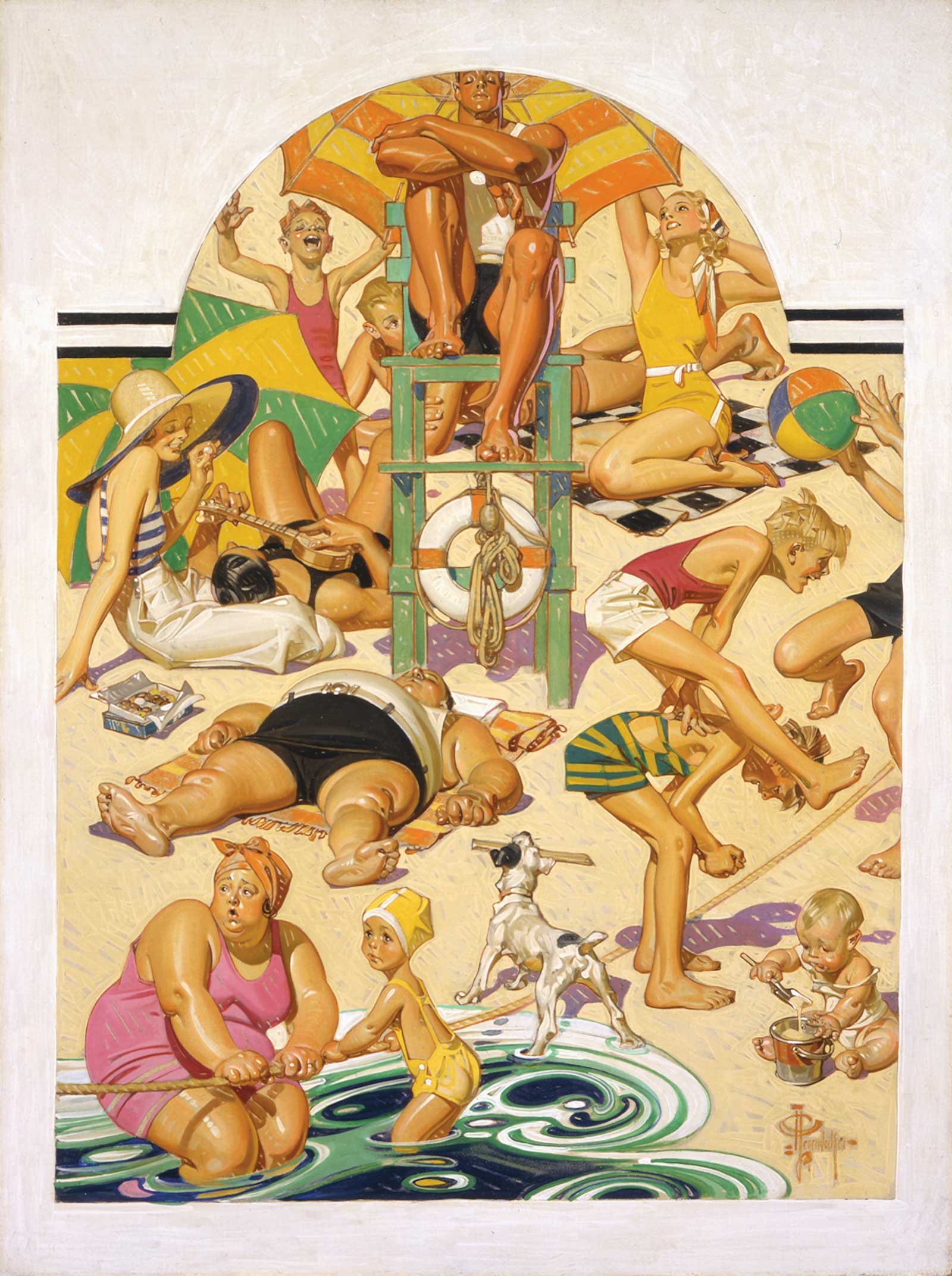 J.C. Leyendecker (1874-1951), Labor Day at the Beach, 1932. Oil on canvas, 32 x 24 in. For Saturday Evening Post, September 3, 1932, cover.