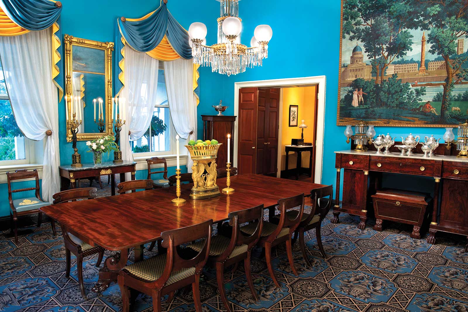 Working closely with curators, conservators, and architectural historians, the Schrimsher Foundation created classical interiors in two historic homes in Charleston, South Carolina, and Huntsville, Alabama, to exhibit its collection. When viewed amongst brightly patterned carpets, upholstery, silk wall hangings, and period lighting, “brown wood” is anything but.