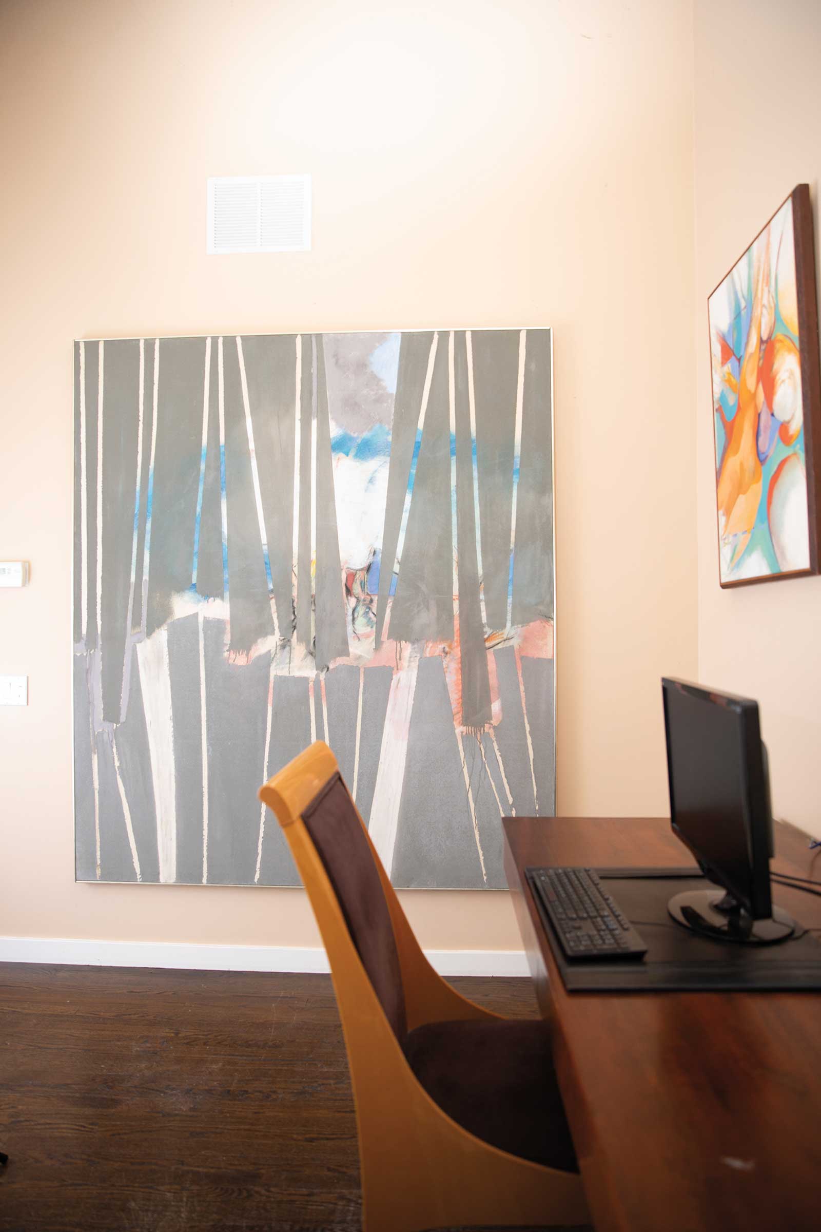 Southampton Bypass, 1966, oil on canvas, by Michael Goldberg (1924-2007) hangs in the office adjacent to Untitled, ca. 1948, oil on canvas, by Bradley Walker Tomlin (1899-1943).